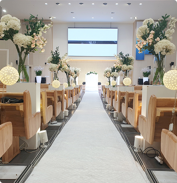 교회 · 성당 예식은 경건한 분위기 속 분주함 없이 온전히 혼인예배 ·혼배성사에 집중할 수 있습니다.